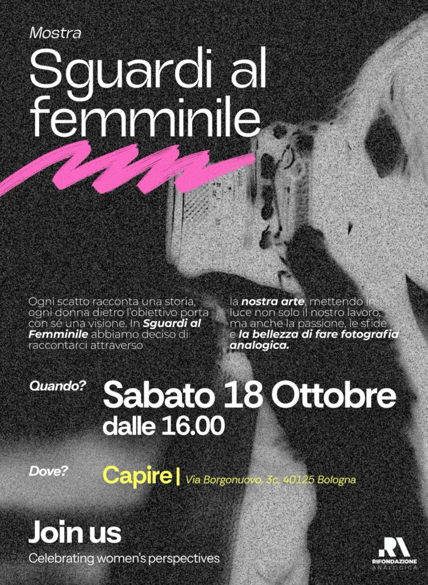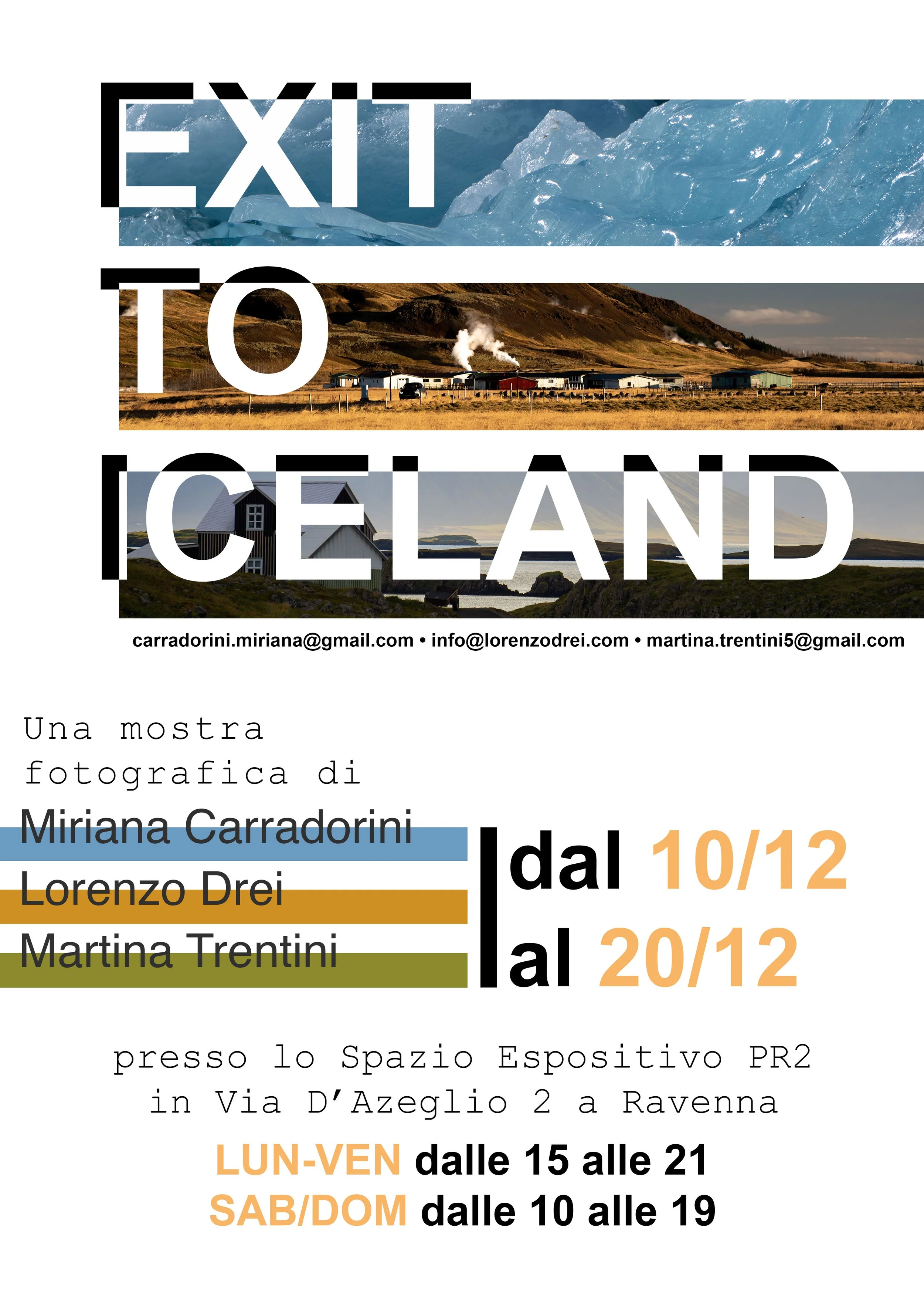Rifondazione Analogica | Sguardi al femminile 18-23 Ottobre 2025 @ Capire, Bologna CocciRotti APS | Senso Spazio - La restituzione 20 Settembre - 13 Ottobre 2024 @ Spazio Espositivo PR2, Ravenna Exit to Iceland 10 - 20 Dicembre 2022 @ Spazio Espositivo PR2, Ravenna
